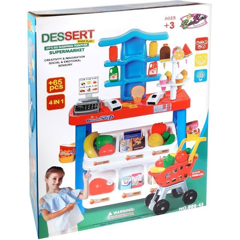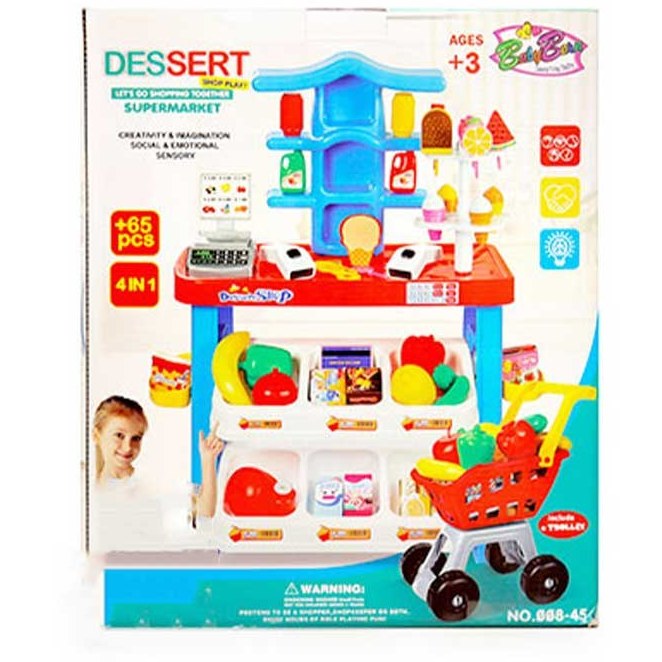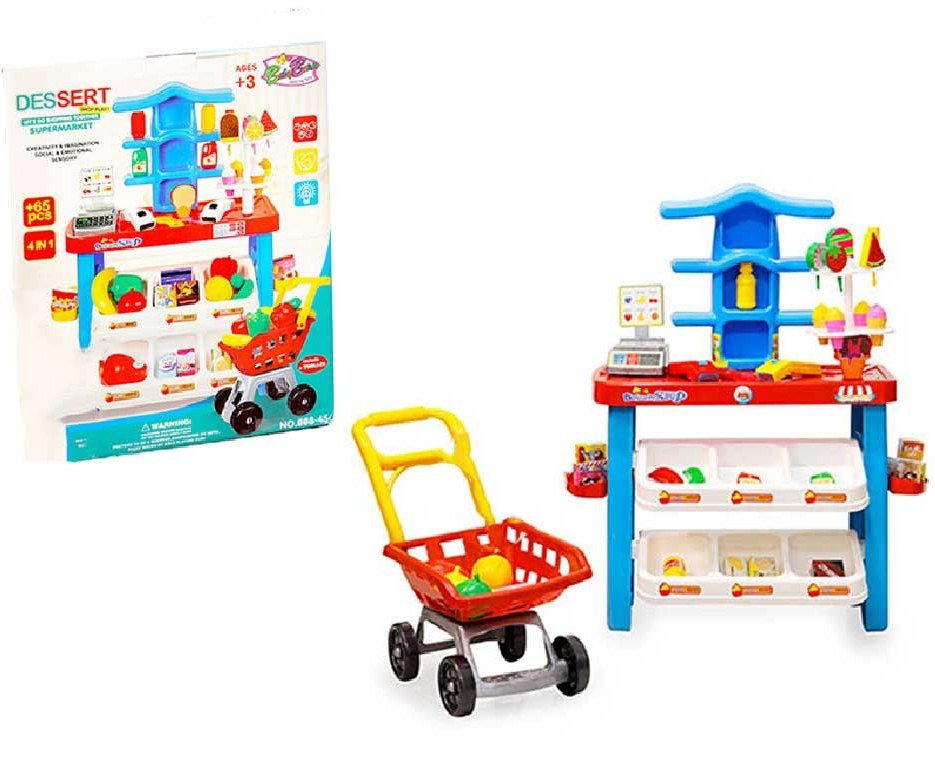 اسباب بازی سوپرمارکت ۶۵ قطعه با چرخ خرید مناسب کودک و خردسال45-008