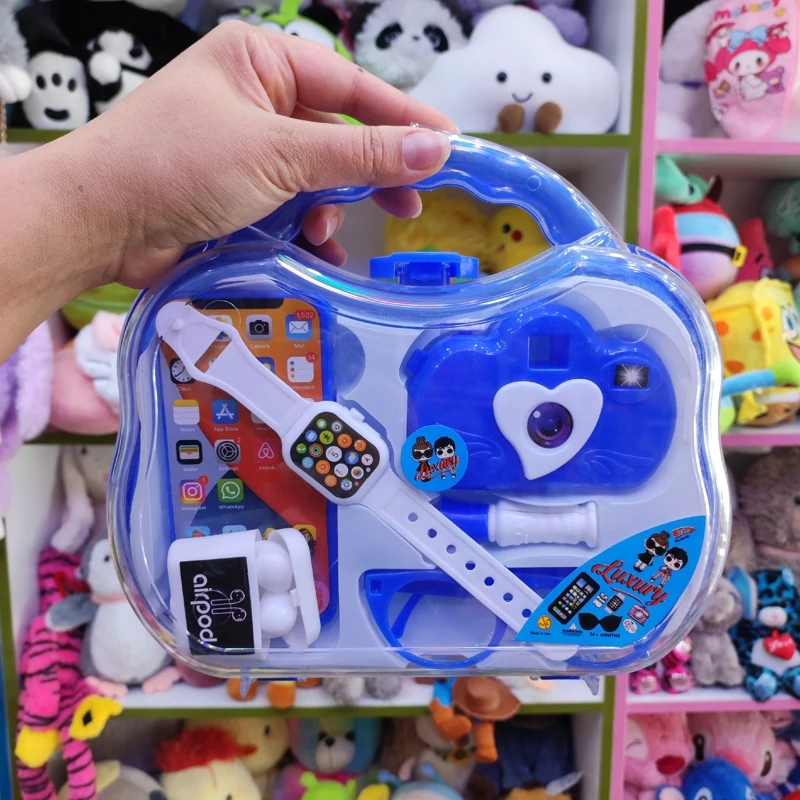 *توضیحات محصول: اسباب بازی ست چمدانی لاکچری شامل آیفون، اپل واچ، عینک و دوربین*