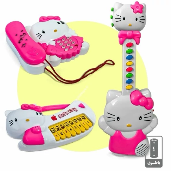 *توضیحات محصول: اسباب بازی 3 تکه کیتی موزیکال شامل پیانو، گیتار و تلفن باتریخور صدا دار*