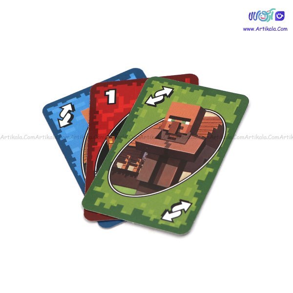 * **محتویات جعبه:** شامل 112 کارت بازی با تصاویر شخصیتها و نمادهای ماینکرافت و دفترچه راهنما.